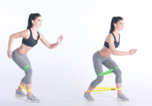 Utilizar mini bandas de resistencia alrededor de los tobillos en lugar de bandas de resistencia más grandes, puede proporcionar una variación en la intensidad del ejercicio. Esta variante se centra en la activación de los músculos estabilizadores de la cadera, y puede ser útil para personas con niveles de fuerza diferentes