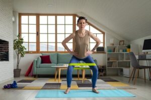 Comienza colocando una banda de resistencia alrededor de tus tobillos o rodillas, según tu preferencia y nivel de resistencia.