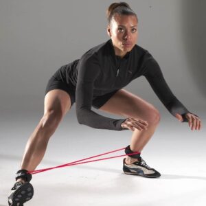 Al caminar con las bandas de resistencia alrededor de los tobillos o las rodillas, el Monster Walk desafía los músculos estabilizadores de la cadera, mejorando así la estabilidad y el equilibrio en esta área clave del cuerpo. Una cadera estable es esencial para prevenir lesiones y mejorar el rendimiento en movimientos atléticos.