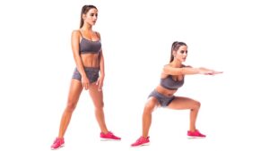 - Sentadillas: Las sentadillas son un ejercicio de cuerpo completo que trabaja principalmente los músculos de las piernas. Realiza 3 series de 10-12 repeticiones.