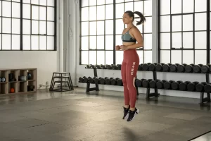 - Levanta los talones hacia arriba mientras saltas.
